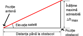 Se va afişa distanţa obstacolului faţă de presupusa antenă montată în punctul ales, de asemenea elevaţia satelitului, şi diferenţa de înălţime maxim admisibilă (Δhmax) calculată de la nivelul antenei, faţă de obstacol, astfel încât obstacolul să fie totuşi sub elevaţia satelitului.